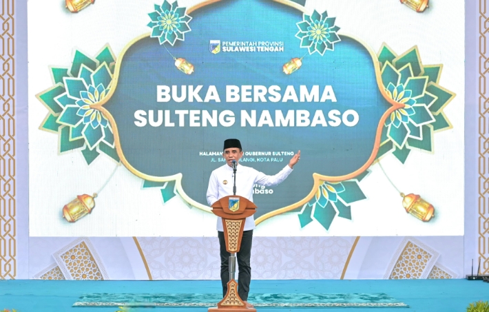 Palu, EQUATORNEWS – Gubernur Sulawesi Tengah Anwar Hafid bersama Wakil Gubernur Reny A. Lamadjido menggelar kegiatan buka puasa bersama bertajuk “Sulteng Nambaso Bersama Masyarakat” yang dirangkaikan dengan Sosialisasi Bahaya Narkoba di halaman Kantor Gubernur Sulawesi Tengah, Jumat (6/3/2026). Kegiatan ini dihadiri ribuan masyarakat serta para siswa SMA dan SMK se-Kota Palu.