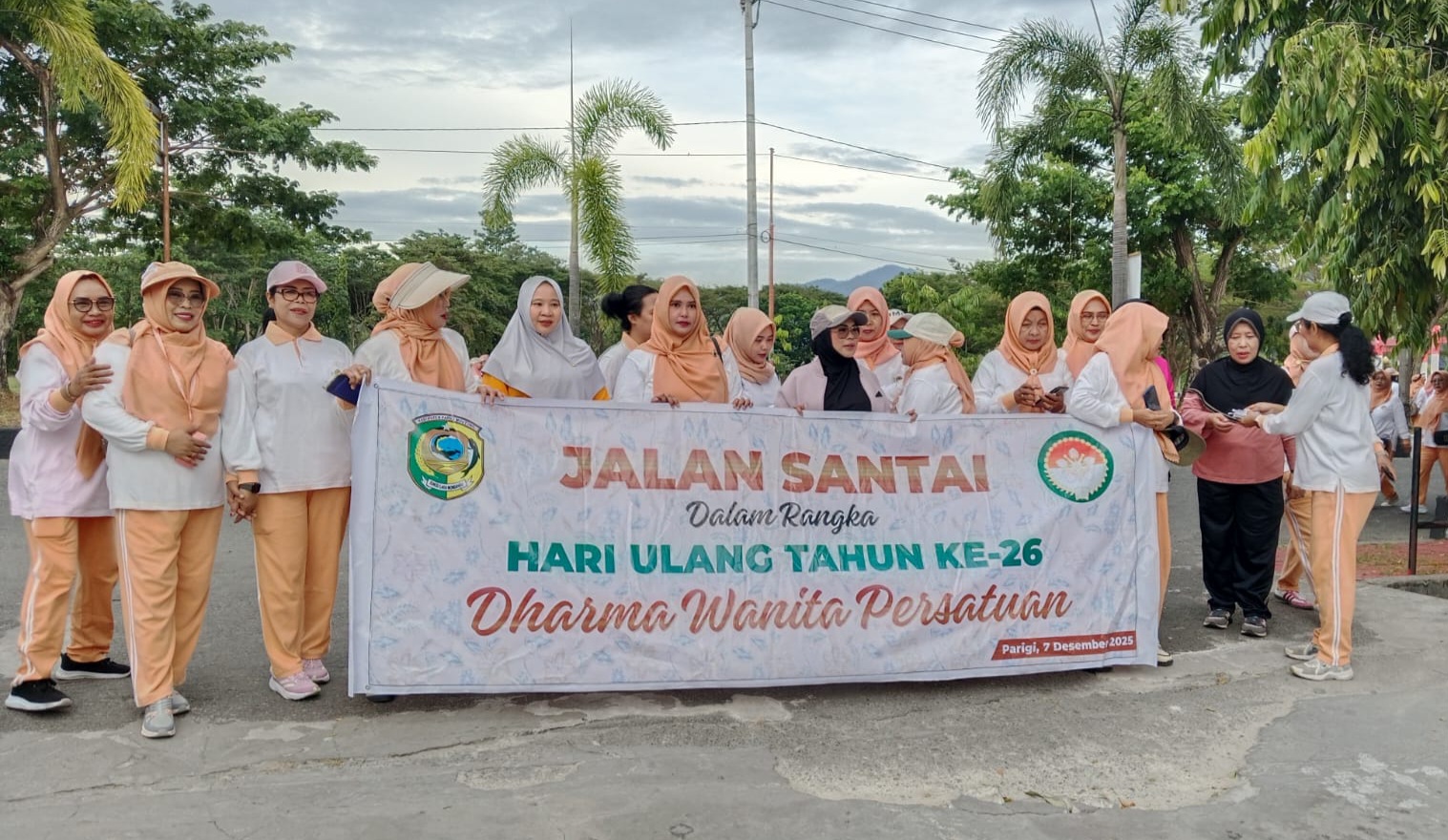 Parigi Moutong, EQUATORNEWS – Dharma Wanita Persatuan (DWP) Kabupaten Parigi Moutong menggelar peringatan Hari Ulang Tahun ke-26 yang berlangsung meriah di halaman Kantor Bupati Parigi Moutong, Minggu (7/12/25).