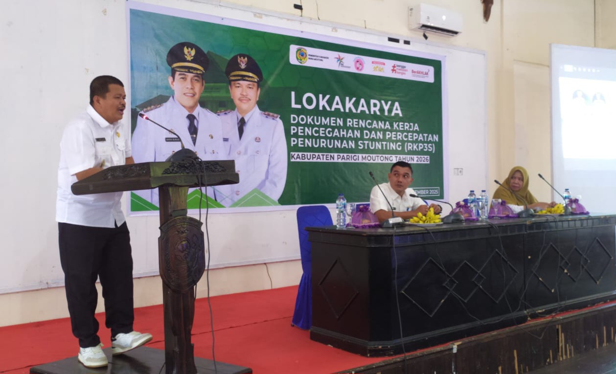 Parigi Moutong, EQUATORNEWS – Pemerintah Kabupaten Parigi Moutong menggelar Lokakarya Penyusunan Dokumen Rencana Kerja Pencegahan dan Percepatan Penurunan Stunting (RP3S) Tahun 2026 yang dibuka secara resmi oleh Wakil Bupati Abdul Sahid, Rabu pagi (10/12/25), bertempat di Aula Bappelitbangda Parigi Moutong.