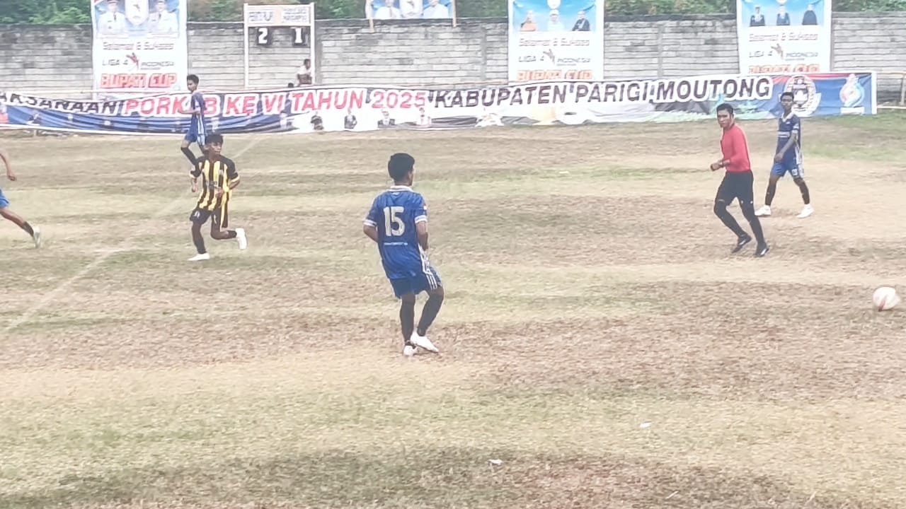 Perintis Palapi (Biru), Bermain Imbang dengan Tadulako Parigi Mpu'u (Kuning).- Foto : EquatorNews