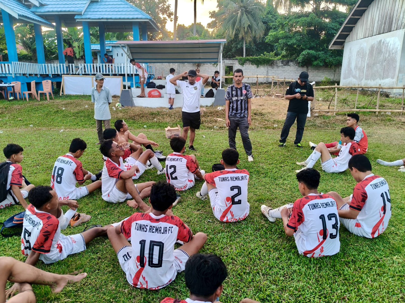 Pelatih Remaja Toha, Andriavin Amran, Sedang Memberikan Arahan Kepada Anak Asuhnya saat Turun Minum .(EquatorNews)