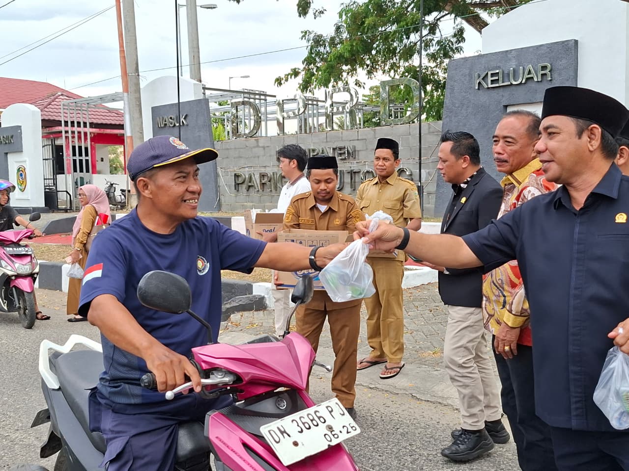 Pimpinan dan Anggota DPRD Kabupaten Parigi Moutong turun langsung ke aspal, menjemput senyum para musafir yang tengah berpacu dengan waktu menuju kepulangan. Ratusan paket takjil berpindah tangan di depan kantor mereka—bukan sekadar kudapan pembatal puasa, melainkan simbol sebentuk kasih yang ditenun di bulan suci.