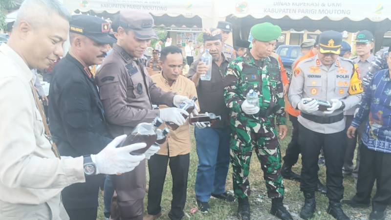 Forkopimda Parigi Moutong Musnahkan Miras Hasil Operasi Pekat II Tinombala Polres Parigi Moutong - Foto : EquatorNews
